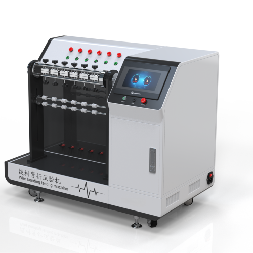 線材彎折試驗機適用于插頭引出線、電源線、USB線、耳機線、音頻線、耳機連接線等成品線材的彎折測試或搖擺測試。本機是將試料固定在夾具上,并加一定荷重,試驗時左右擺動,經(jīng)一定數(shù)次后,檢測其斷線率,查看其總擺動次數(shù),能自動計數(shù),試料彎折至斷線無法通電時,并能自動停止操作。